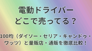 日用品 電動ドライバーはどこで売ってる?100均(ダイソー・セリア・キャンドゥ・ワッツ)と量販店・通販を徹底比較! ネジ外しや家具の組み立て、ちょっとした増し締め――電動ドライバーが一本あるだけで、作業がぐっと気楽になりますよね。とはいえ「今日すぐ手に入れるならどこがいいかな?」「100均(ダイソー・セリア・キャンドゥ・ワッツ)のタイプでも足りるのかな?... 2025.10.02 日用品